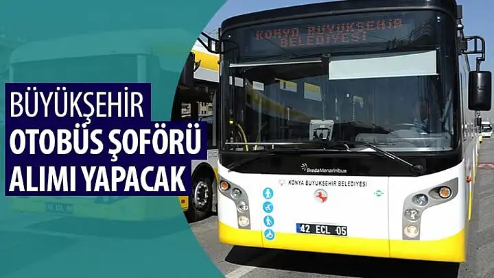 Konya Büyükşehir Belediyesi, ulaşım filosunu güçlendirmek üzere Konya Şehir Hizmetleri A.Ş. bünyesinde istihdam edilecek 100 yeni otobüs şoförü alımı için ilana çıktı.
