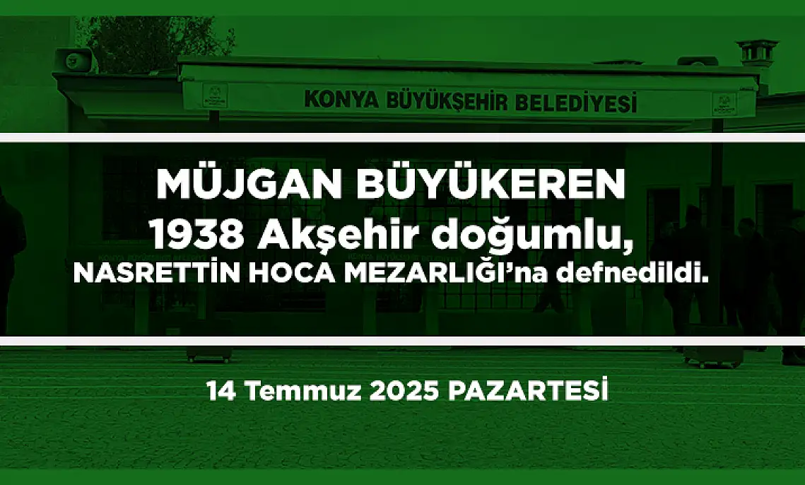 Haberler Konya Konya'da Bugün 18 Kişi Toprağa Verildi (14 Temmuz 2025 PAZARTESİ) Konya'da Bugün 18 Kişi Toprağa Verildi (14 Temmuz 2025 PAZARTESİ) 14 Temmuz 2025 tarihinde Konya'da 18 kişi ebediyete uğurlandı. İşte vefat edenlerin isimleri, doğum yerleri ve defnedildikleri mezarlıklar. konyada ölenler PAYLAŞ 14.07.2025 17:48 Güncelleme: 14.07.2025 17:48 Rasyonel HaberEditör TAKİP ET 18 18 PAYLAŞ MÜJGAN BÜYÜKEREN 1938 Akşehir doğumlu, NASRETTİN HOCA MEZARLIĞI’na defnedildi.