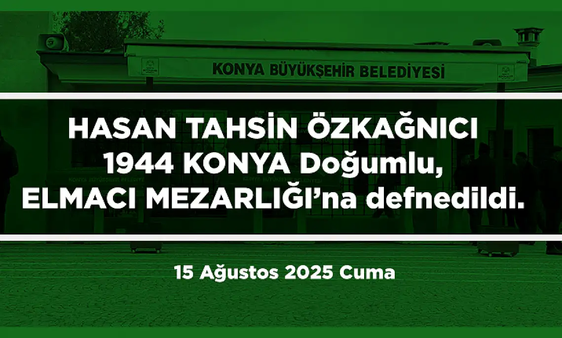 HASAN TAHSİN ÖZKAĞNICI 1944 KONYA Doğumlu, ELMACI MEZARLIĞI’na defnedildi.