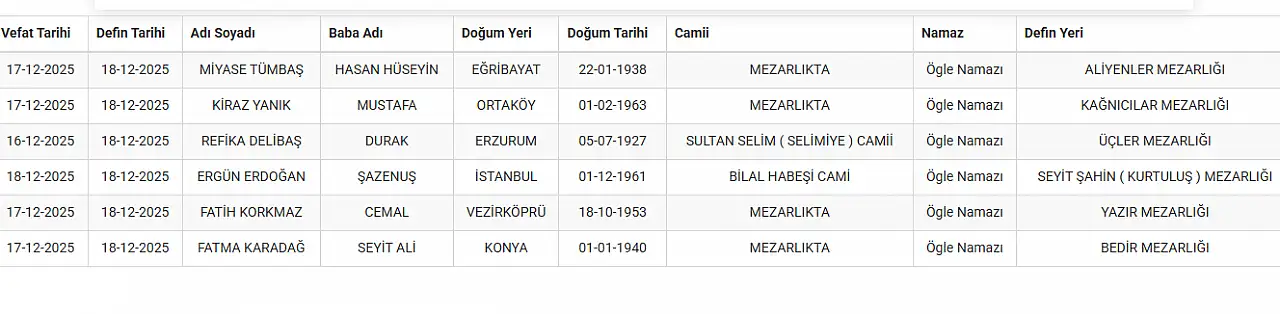 Haberler Vefat Edenler KONYA'DA BUGÜN VEFAT EDENLER KONYA'DA BUGÜN VEFAT EDENLER KONYA PAYLAŞ 18.12.2025 11:13 Güncelleme: 18.12.2025 11:32 Rasyonel HaberEditör TAKİP ET