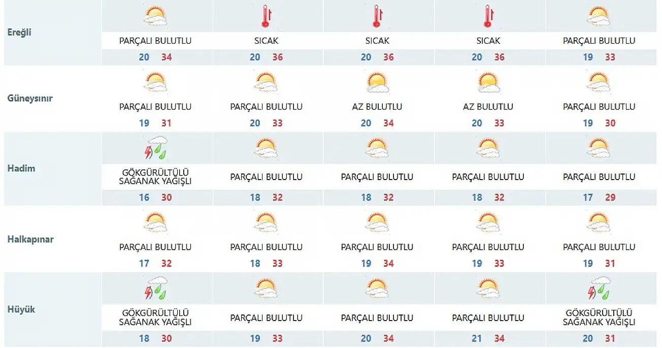 Haberler Konya Konya İçin Sağanak Uyarısı: 12 İlçede Pazartesi Günü Yağmur Bekleniyor! İşte Liste Konya İçin Sağanak Uyarısı: 12 İlçede Pazartesi Günü Yağmur Bekleniyor! İşte Liste Konya'da bir süredir devam eden sıcak havanın ardından, Meteoroloji Genel Müdürlüğü'nden serinleten bir haber ve önemli uyarılar geldi. Konya hava durumu PAYLAŞ 03.08.2025 19:07 Güncelleme: 03.08.2025 19:07 Rasyonel HaberEditör TAKİP ET 7 10 PAYLAŞ Görsel - 7 : Konya İçin Sağanak Uyarısı: 12 İlçede Pazartesi Günü Yağmur Bekleniyor! İşte Liste