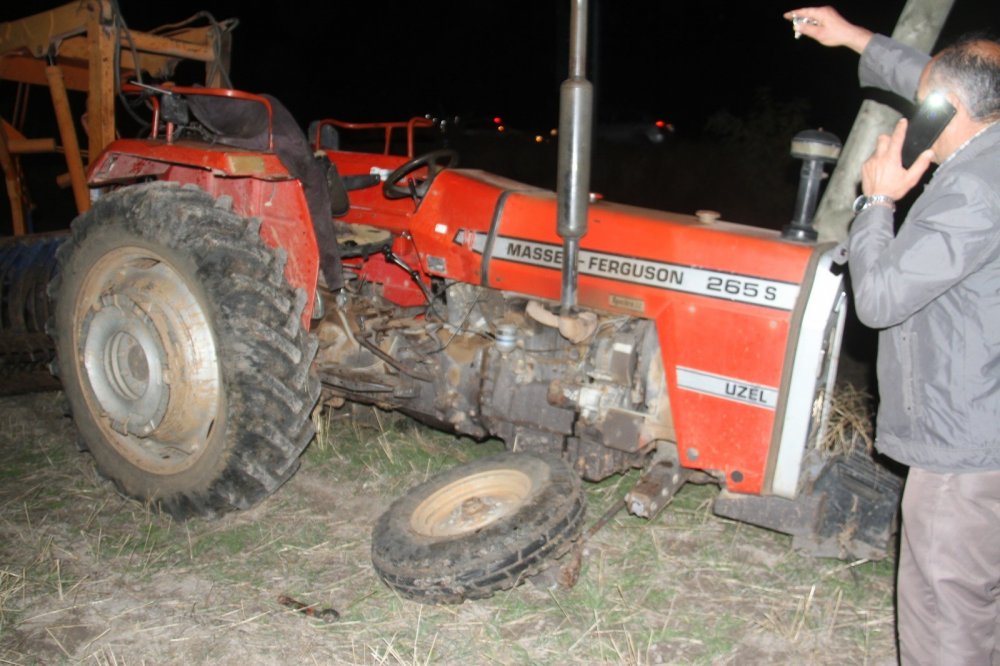 Henüz plakası belirlenemeyen otomobilin seyir halinde bulunan traktöre arkadan çarptığı iddia edildi.
